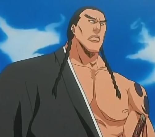 Er hat schwarze Haare die zu zwei Zöpfen geflochten sind. Zudem hat er ein Tattoo auf seiner Schulter, dass ein wenig an ein Clanzeichen erinnert. Seine Shinigami-Uniform ist auf der linken Seite seiner Schulter entfernt.