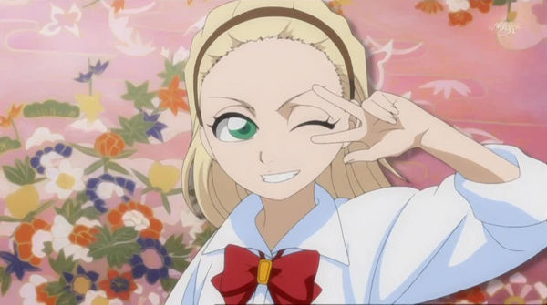 Meist trägt das stets adrett gekleidete Mädchen eine weisse Bluse mit einer passenden Schleife dazu. Alternativ ist sie auch des Öfteren in ihrer Schuluniform anzutreffen. Da sie adeliger Herkunft ist, trägt sie jedoch auch gerne Kimonos.